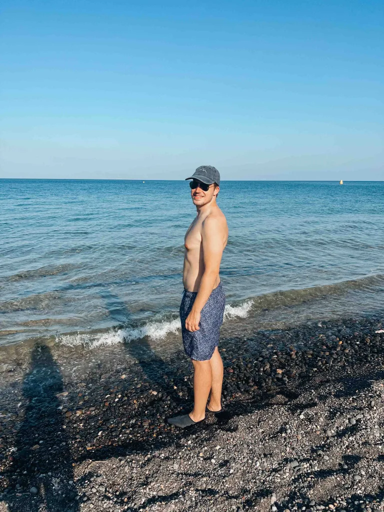 Estávamos na praia de Agios Prokopios, a nadar ao longo da costa, paralelamente à areia, quando de repente… algo nos passa mesmo à frente da cabeça. Uma prancha? Um tubarão? Uma alforreca gigante? Não. Um homem. Um homem morto.